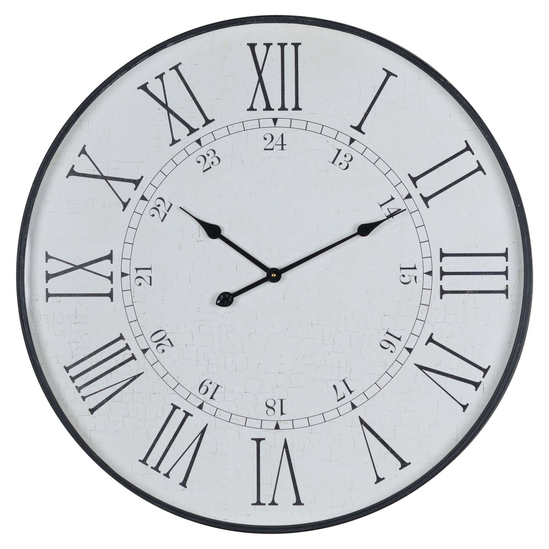 Natural Wood and Antique Grey Metal Round Wall Clock Large
