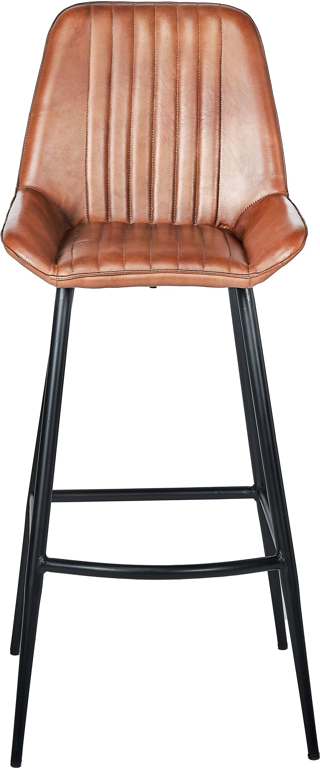 Angelo Vintage Brown Leather and Black Metal Retro Bar Stool