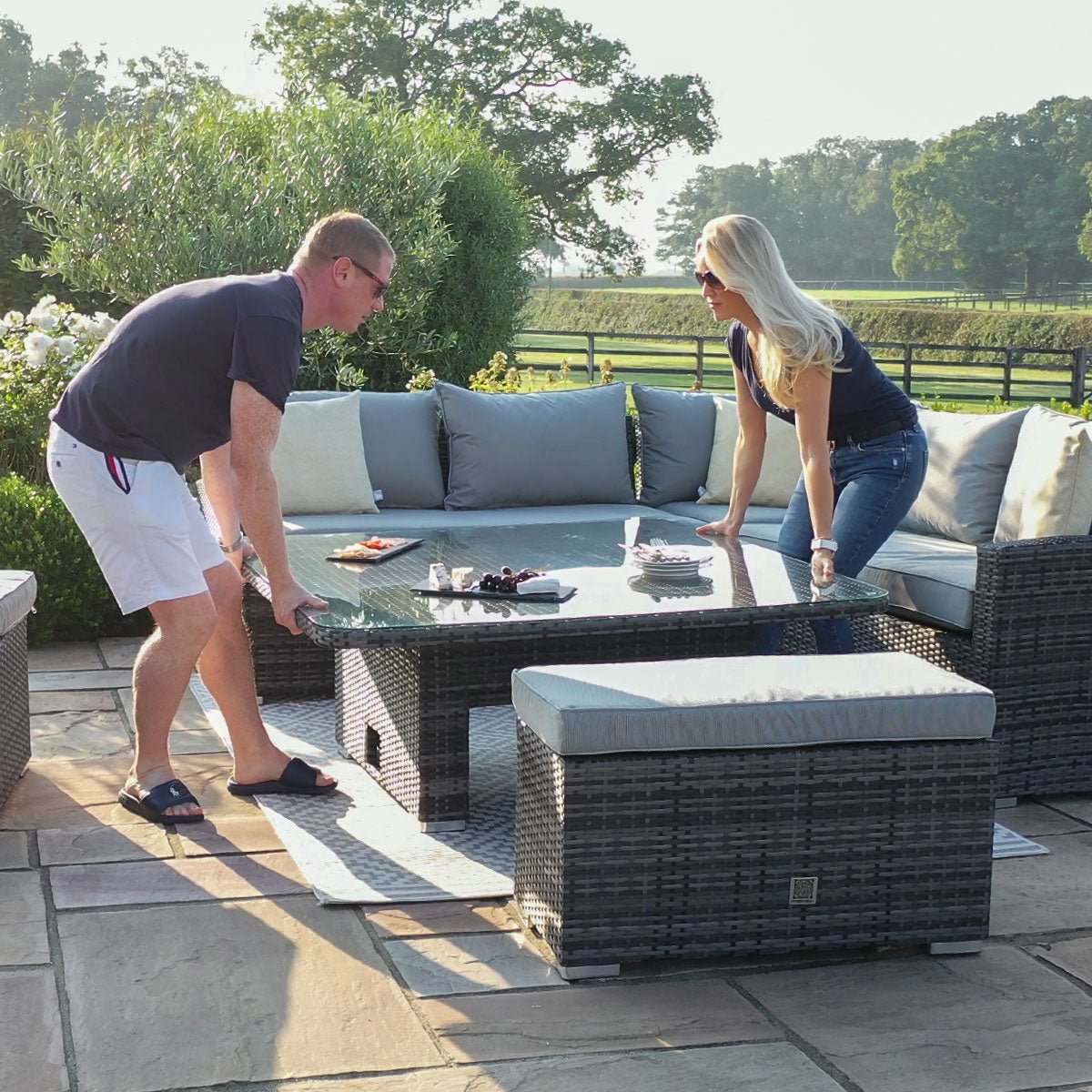 The Deluxe Kingston Corner Dining Set with Rising Table is the perfect addition to any outdoor space and has been masterfully crafted to suit any garden, patio, decking or lawn.
