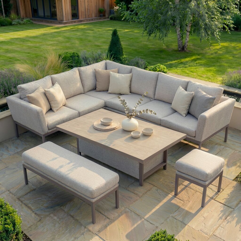 Montreal Large Corner Dining Set With Rectangular Rising Table