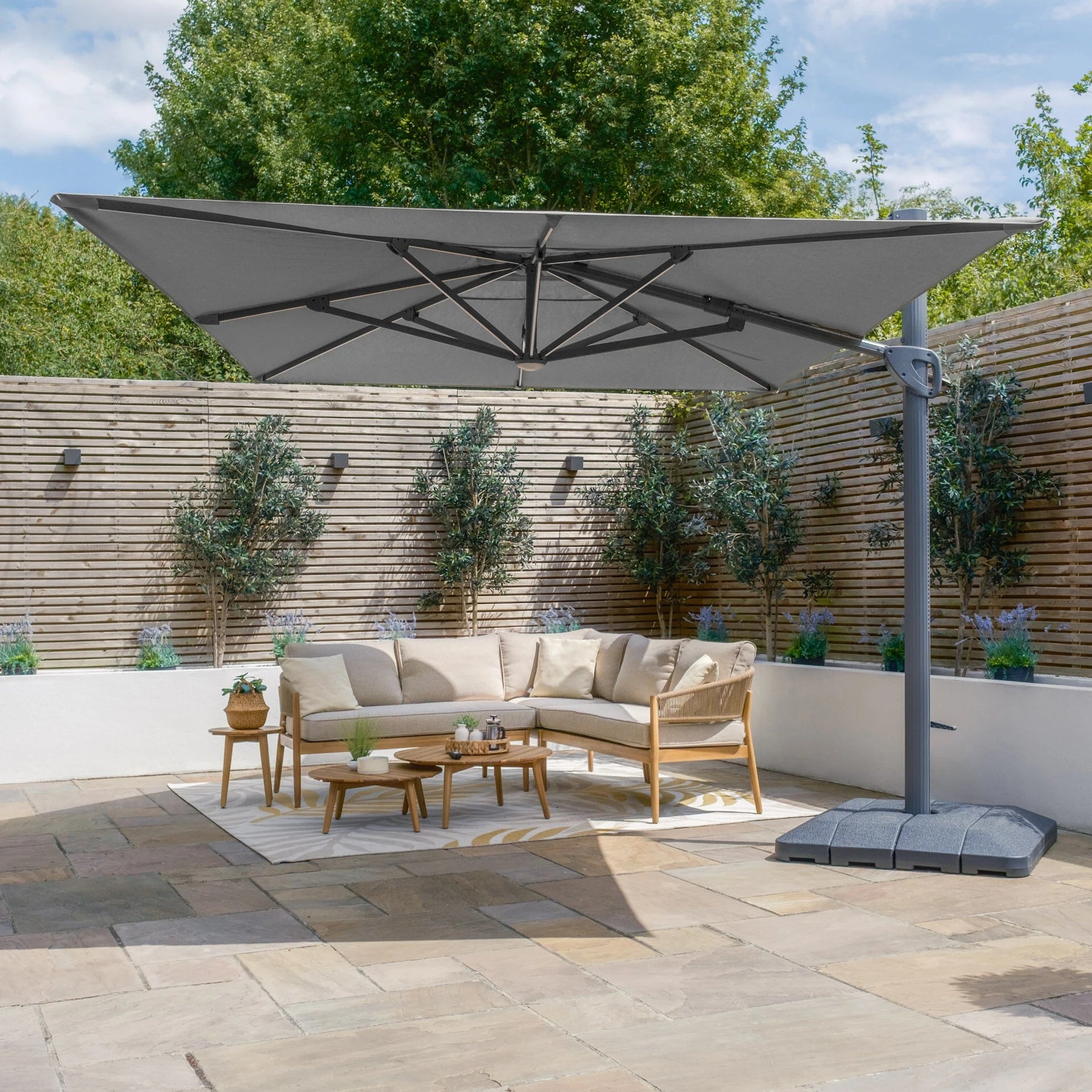 Aramis LED 3m x 4m Rectangular Rotating Cantilever Parasol - With Base