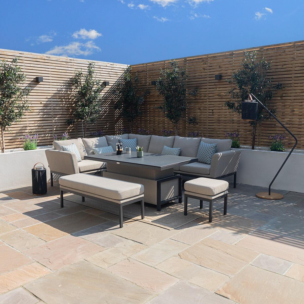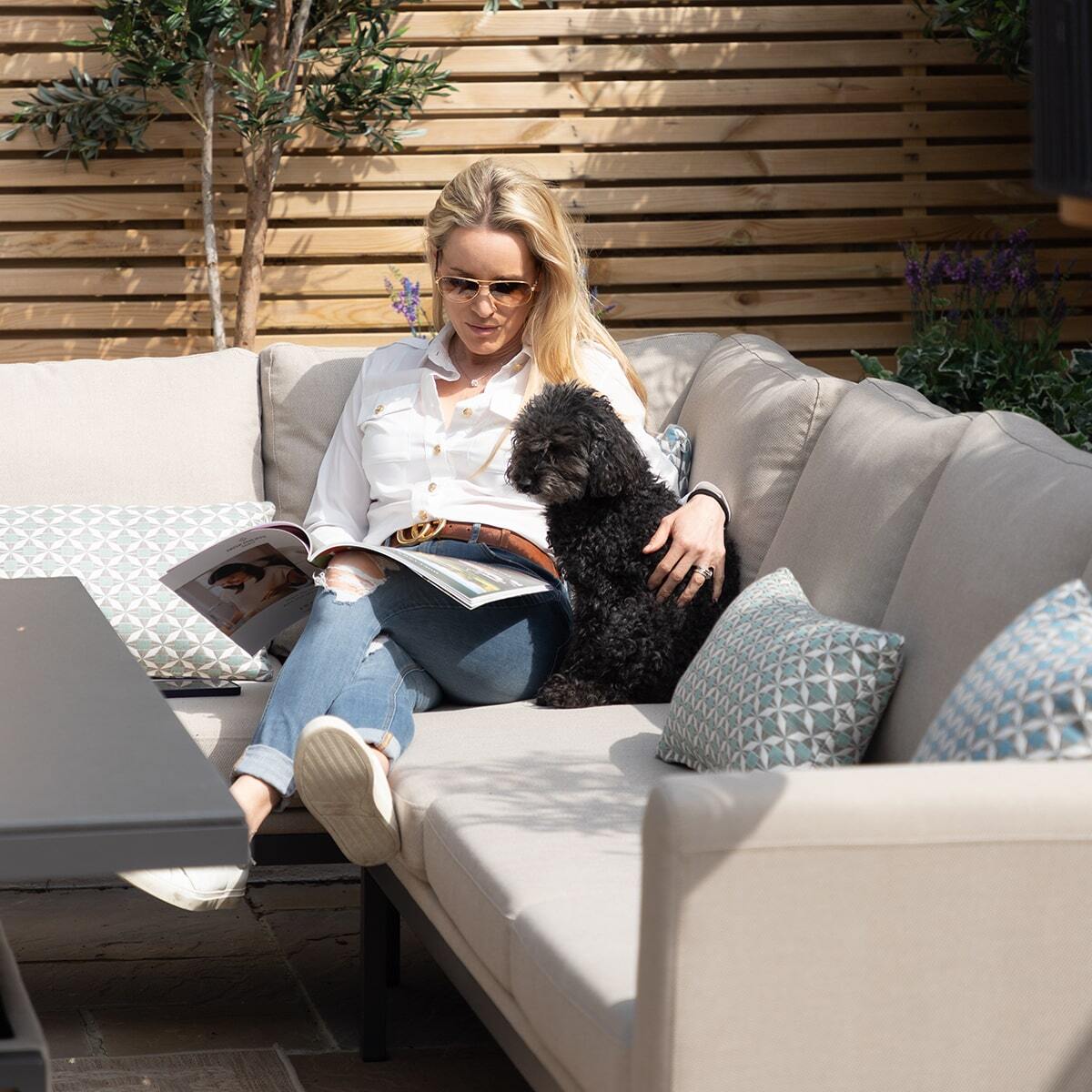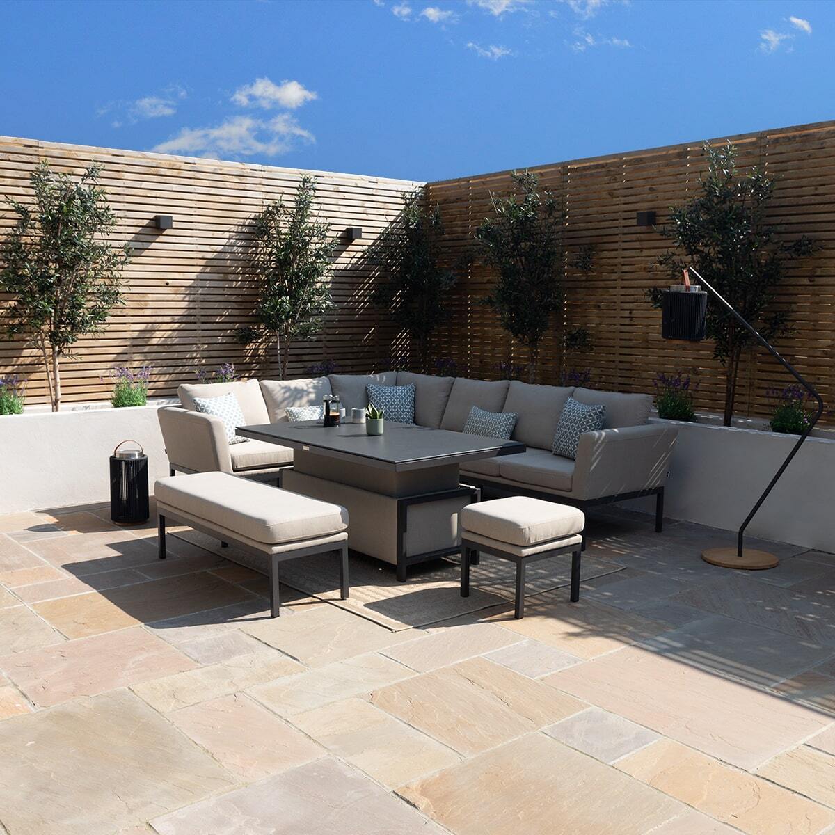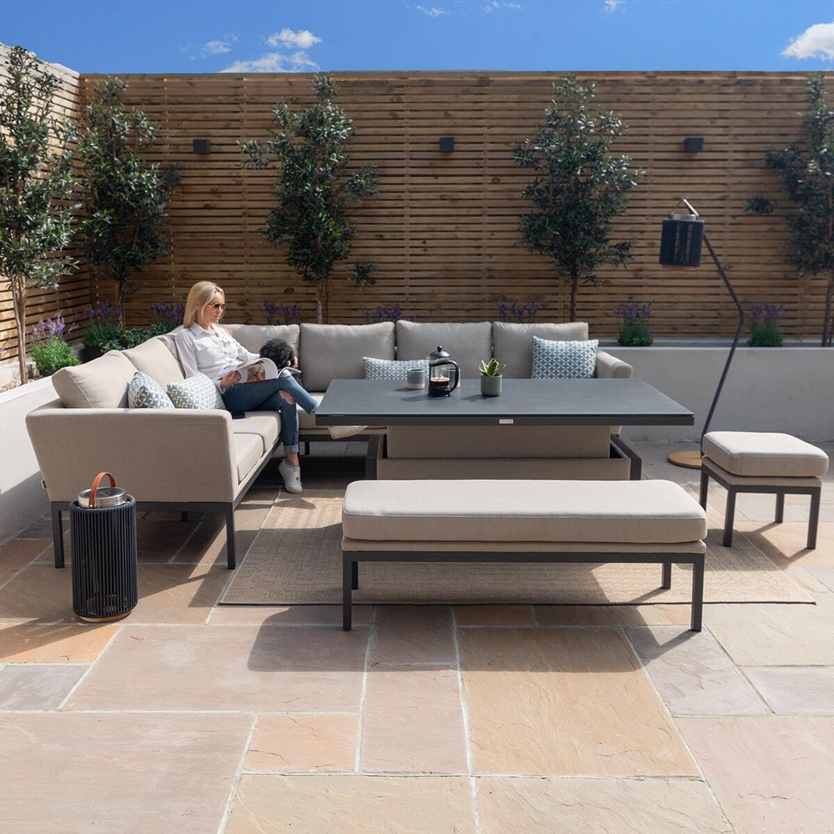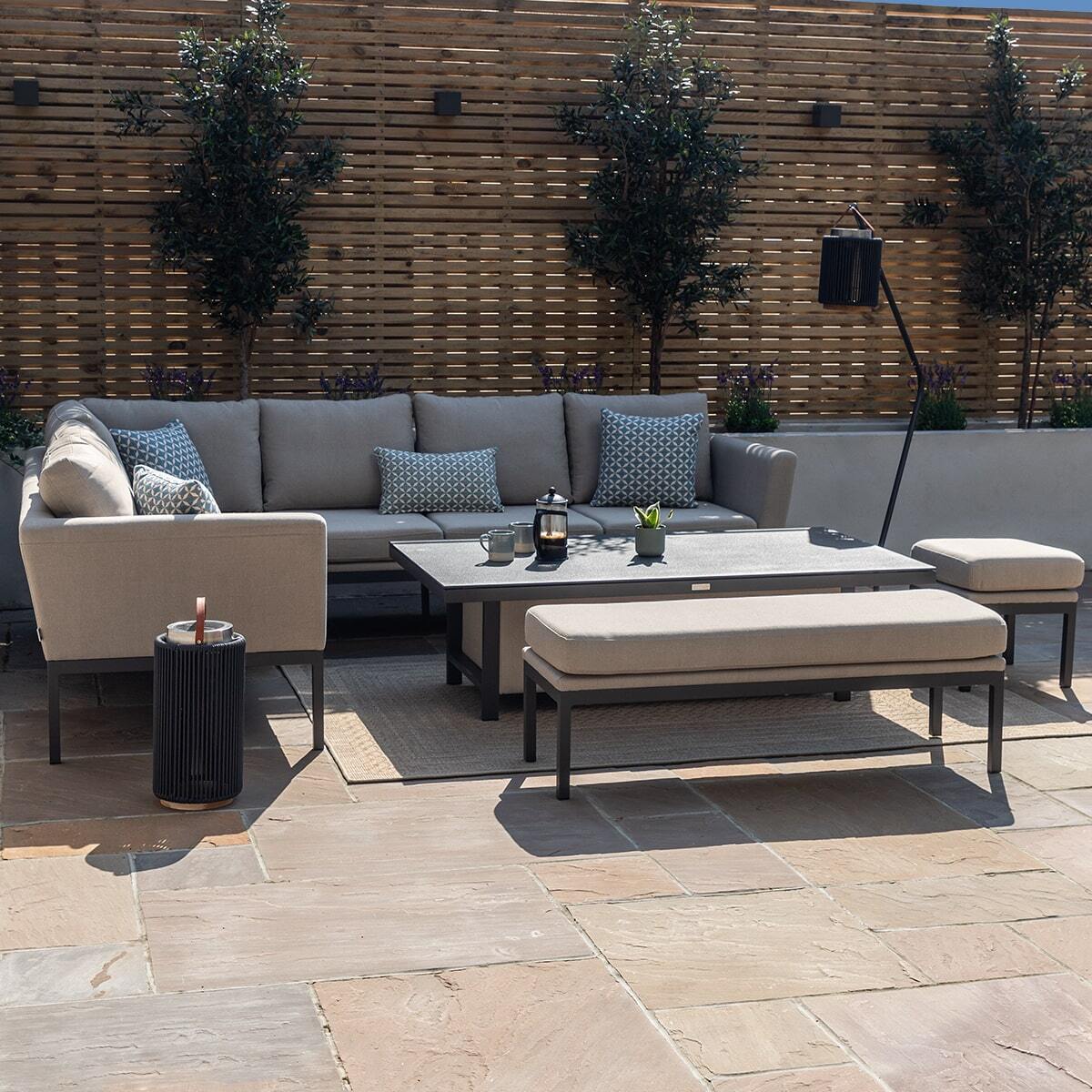 Any spill on your outdoor fabric can be cleaned immediately with soapy water, most spills will simply wipe off with just a cloth or tissue as the fabric is made to be highly resistant. Our outdoor fabric range is made to be left outside all year round, you may find it after the winter months your set has become dirty and slightly mouldy from the changes in weather. You can simply clean your whole set using a jet washer on a soft/low setting (not too close) and then use our cleaning kit to bring your set back to life! We supply cleaning kits which we have made to suit cleaning your outdoor fabric set, please look for our Maze - Outdoor Fabric Furniture - Cleaning & Protector Kit for Outdoor Fabric.