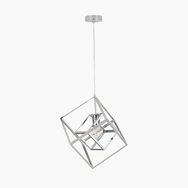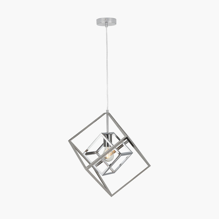 Alessio Shiny Nickel Metal Cube Pendant