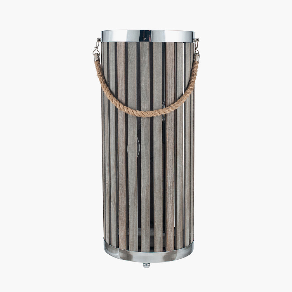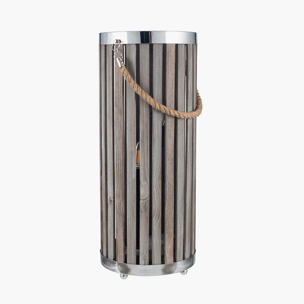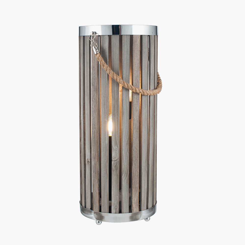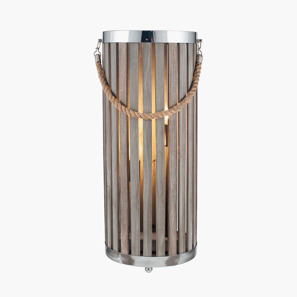 Bring some soft coastal styling into your home with our grey wash wood slatted table lamp. The slatted design diffuses the light in an elegant manner, emanating a homely feel and would look stunning in any interior space. Also available as a small table lamp.