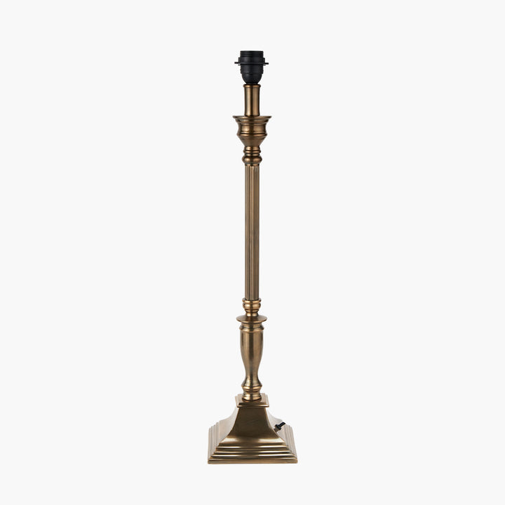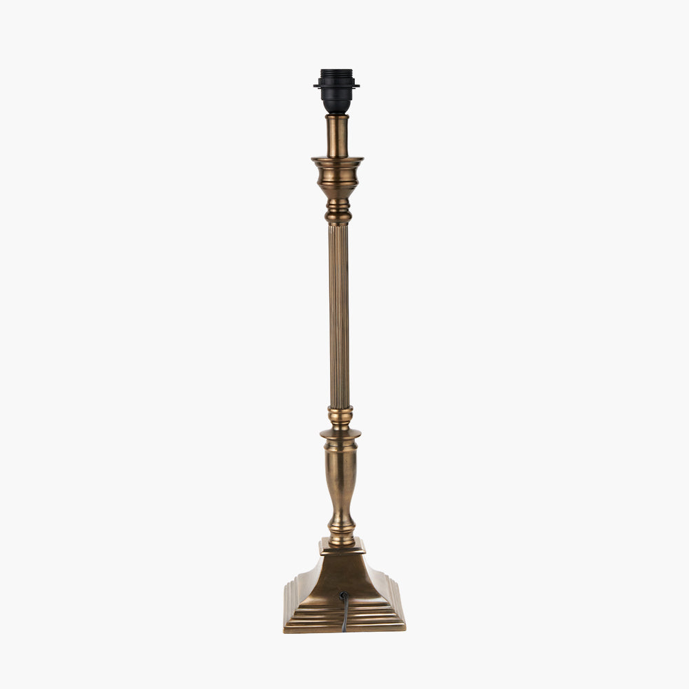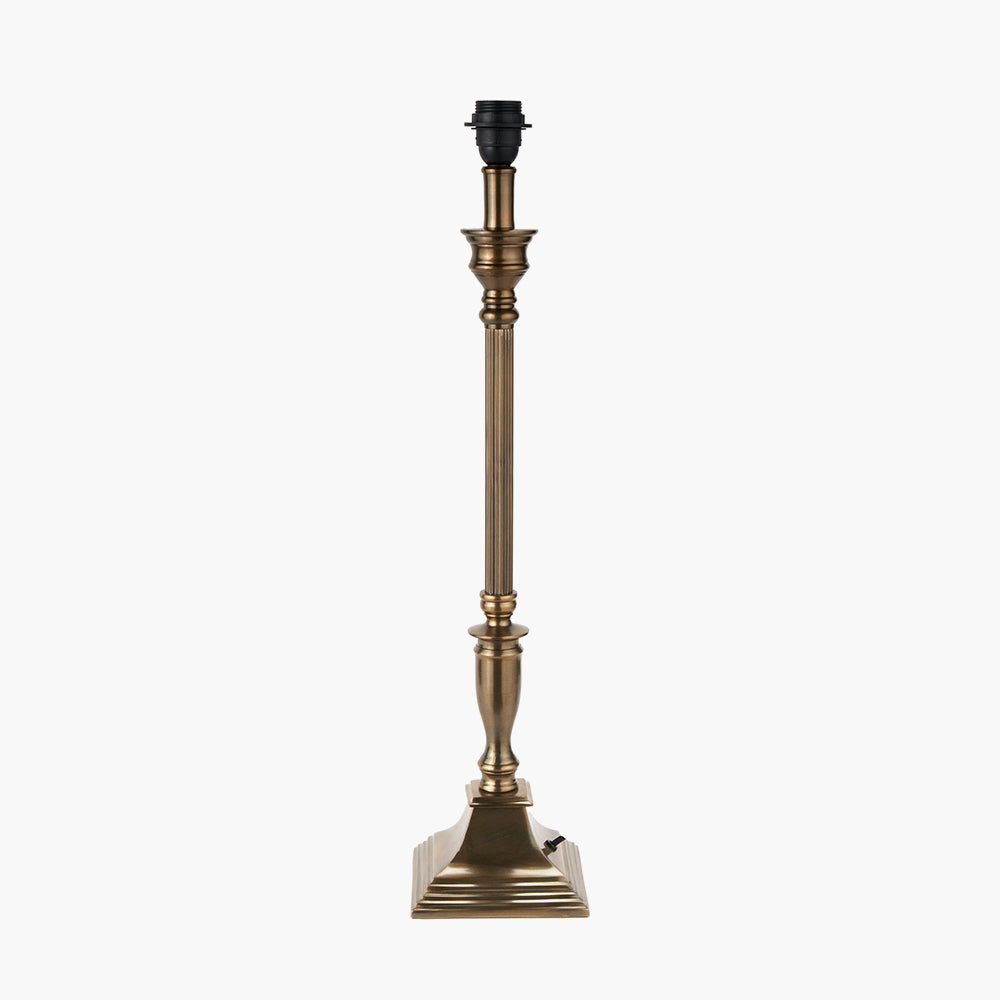 Traditionally styled, this antique brass lamp base with ribbed detail on the column, will add a hint of the colonial to your look. Style with either a cylinder or a tapered shade from our range. Also available in a floor lamp Recommended lampshade size: 35cm diameter