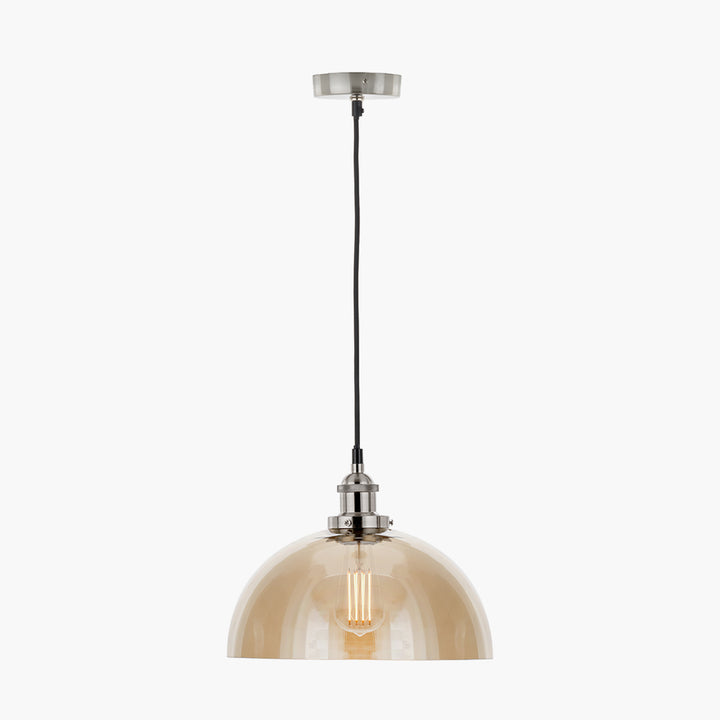 Cecilia Antique Silver Metal and Lustre Glass Dome Pendant