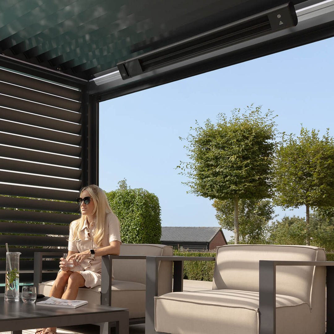 The Maze Eden Pergola Heater 240V has been designed to seamlessly integrate with our Eden Pergola collection by fitting to the framework on the underneath of the roof. Perfect for extending time in your garden on those cooler evenings the Eden outdoor heater will keep you and your guests nice and warm. The Eden frame-mounted heater uses a high efficiency infrared carbon fibre heating element, the 1.8kW element produces totally dry heat, no condensation, no gas, no fumes and no smell and unlike other heaters will not give off a harsh orange glow, but will remain the same colour as pictured.