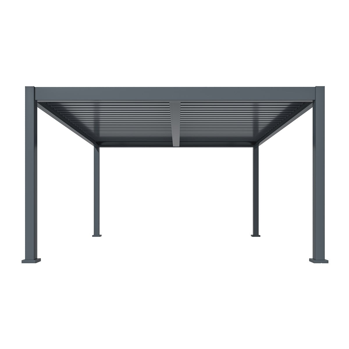 The Maze Eden Pergola Aluminium Square 4m x 4m Frame Only in Grey is a perfect way to create a stylish, covered area in your garden. Crafted from high-quality UV resistant aluminium which is resistant to fading and protects you and your family from harmful UV rays. The Maze Pergola is made with 100% weather resistant materials ensuring a solid maintenance free construction. The motorised tilting roof louvres can be set to closed, sheltered, or open with the simple switch of a button on your remote control. Alongside the movement of the louvres, the remote also controls the colour-changing LED lights which are integrated underneath the inside of the pergola roof frame structure. The selection of colours available to display make this the perfect way to extend your outdoor experience into the evenings. The Maze Eden Pergola features a built-in drainage system, rainwater that lands on the closed louvres will flow into U-shaped channels, along the roof framework and down hollows within the pergola columns onto the ground via a small opening at the base of each column. This clever system means that you won’t need to worry about opening or closing the roof louvres to clear water from the top of the structure, this has all been taken care of for you. Available to purchase separately are the Eden drop screens and louvre panels providing additional privacy and protection from the elements. The Eden drop screens made from Textilene feature a new zip lock and slot directly into the framework of the pergola columns, or if you fancy something a bit more striking, we also have the Eden aerofoil blade louvre panels with fixed positions to give more personalisation than ever before. Exclusive to this Pergola is the Eden Pergola Heater which can be fitted to the internal framework of the pergola to make long evenings in the garden even more luxurious.