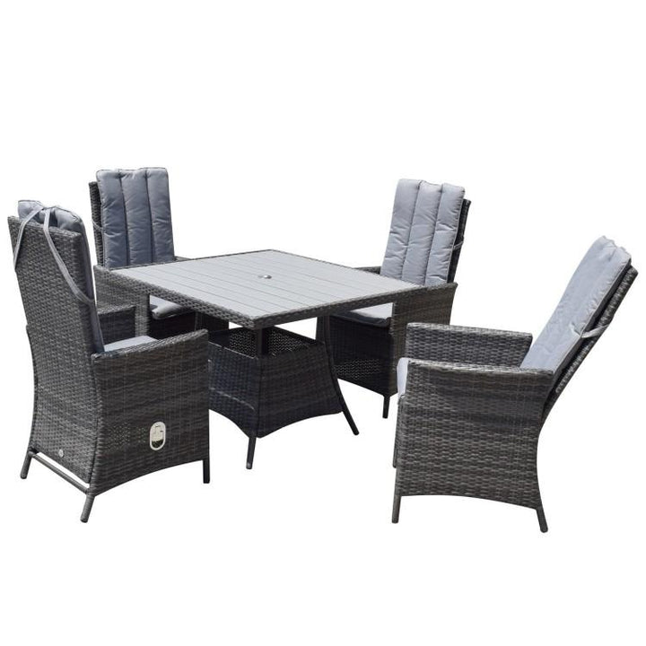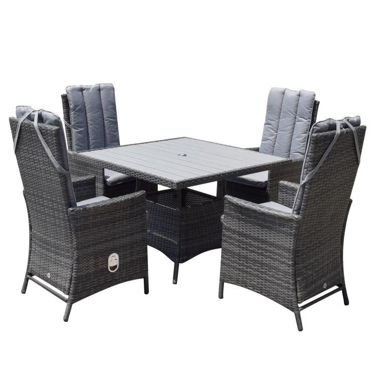 - High quality, contemporary style grey rattan 4 seater Reclining Square Dining Set