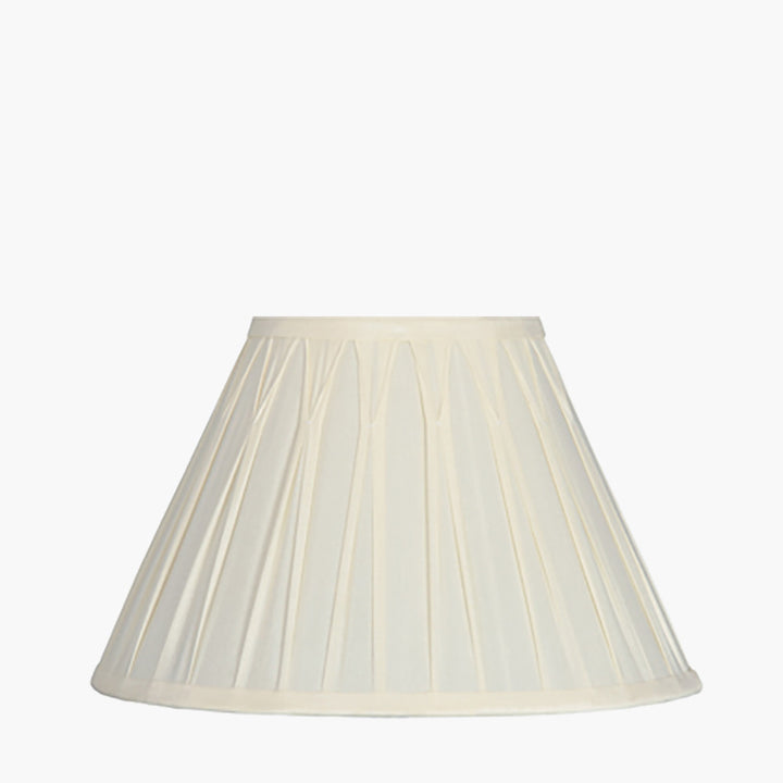 A classic 40cm empire shade created usinig a silk effect material which has a beautiful pinch pleat detail. Finished in a neutral cream colour and soft balloon lining this shade will sit beautifully on most base styles creating a timeless classic.