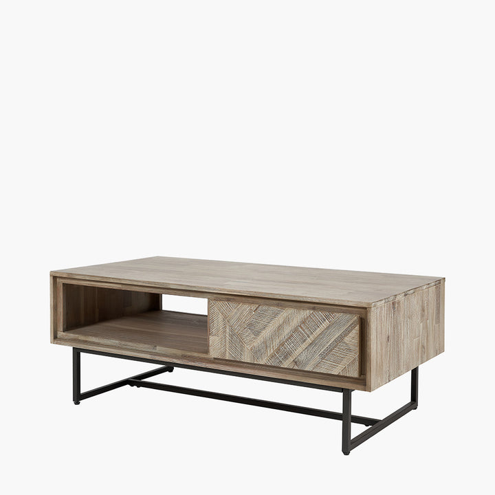 Marca Sand Wash Acacia Wood and Black Metal 2 Drawer Coffee Table