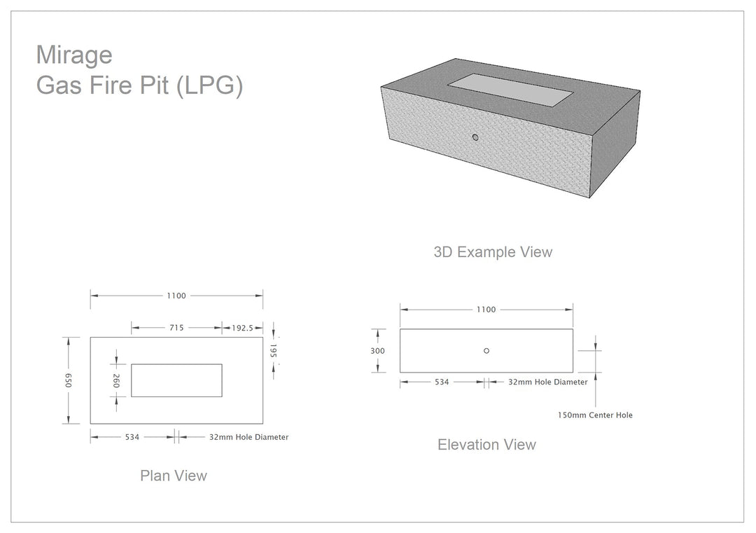 Our pre built Mirage Architectural Gas Fire Pits are all ready to go. All options come complete with burner kits and a 5m gas hose ready to connect to a propane gas bottle in the exact same way you would with a standard household BBQ.