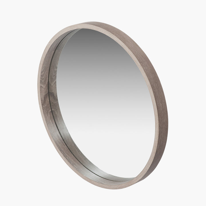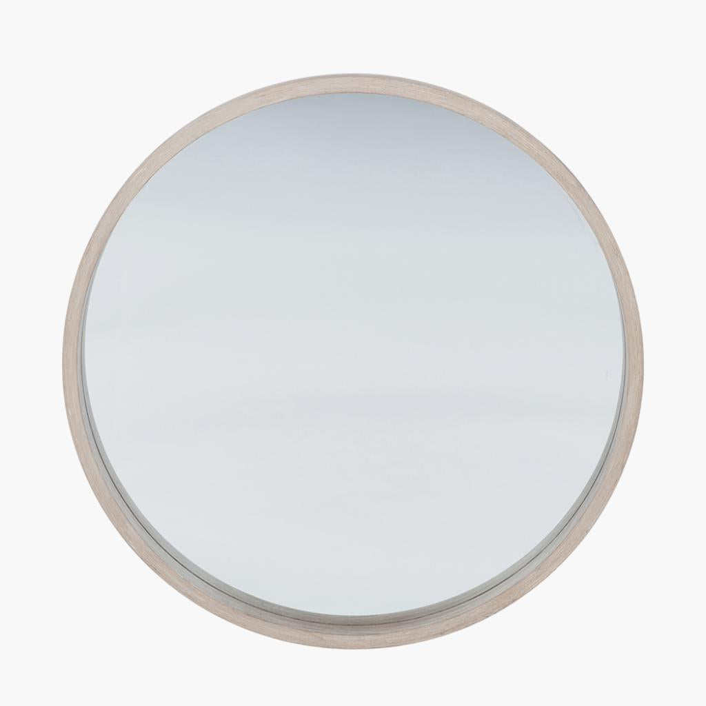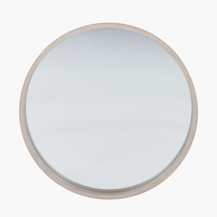 Simple and elegant. This round mirror has a natural wood frame allowing the mirror to be inset showing off the clean light wood detail. This mirror would sit perfectly in a neutral or scandi style room. Not suitable for bathroom use.