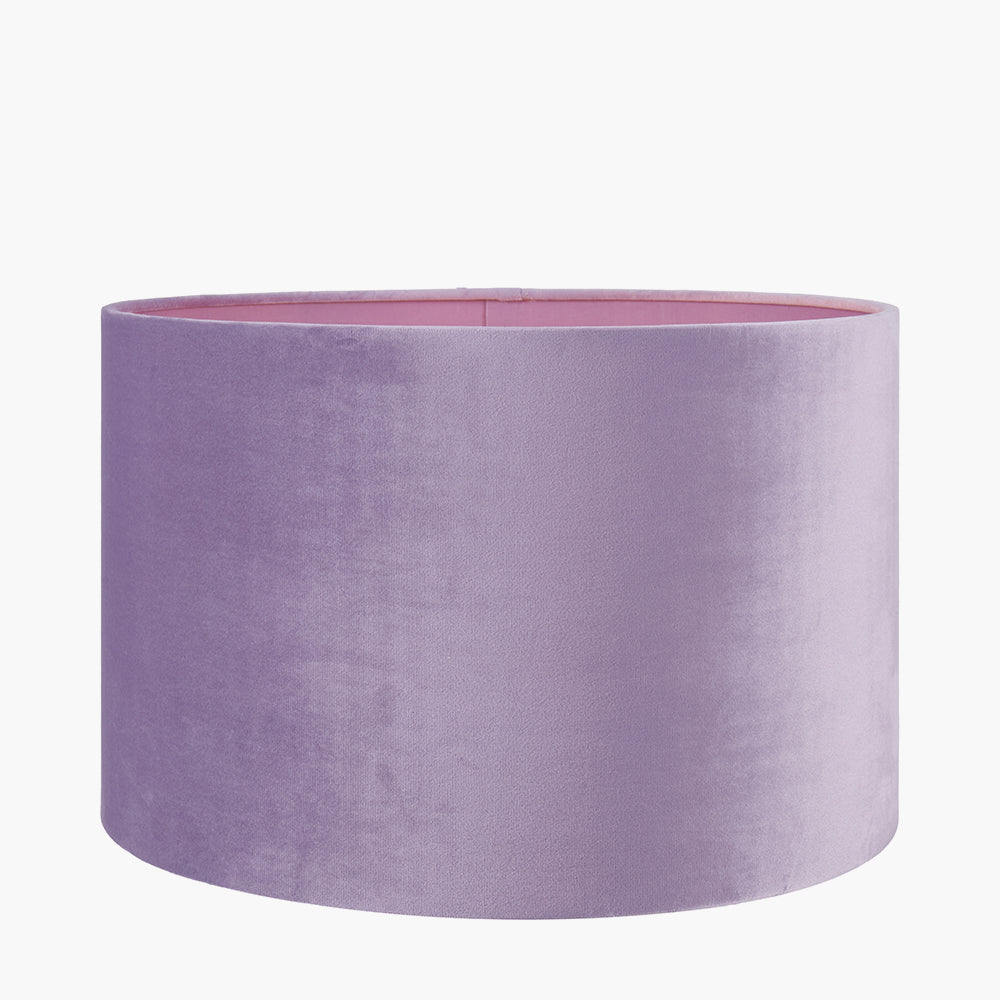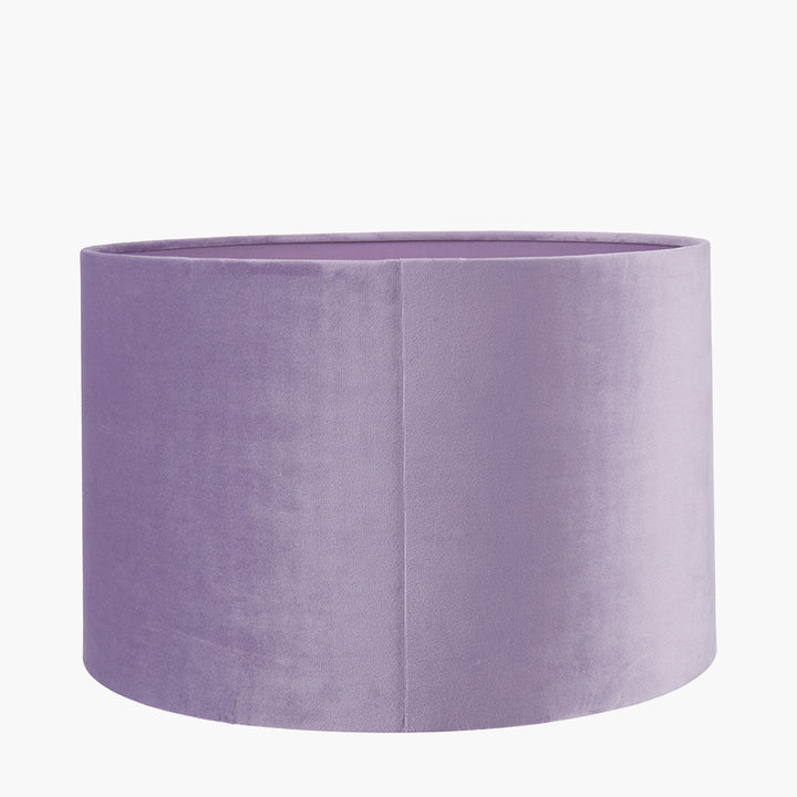 The 45cm Rene velvet cylinder shade is finished in a sumptuous lilac velvet with a matching colour faux poly cotton lining. The delicate tone of this shade will be the perfect fit to any ceiling or lampbase.