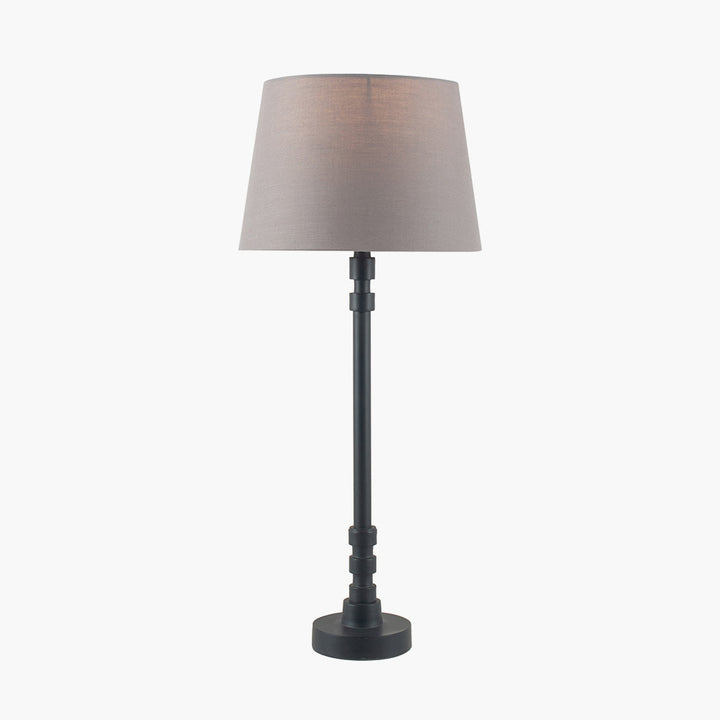 Simple yet elegant stick base with a modern deep stepped foot finished in a contemporary matt black. This table lamp would look perfect on a console table finished with a slim shade to light the darkest of hallways. Also available as a floor lamp. Recommended lampshade size: 30cm diameter
