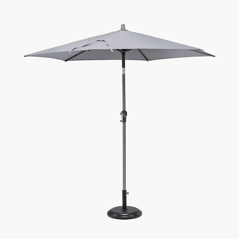 The Riva centre-pole parasol has a strong, contemporary aesthetic. Our Centre Pole Parasol has a strong powder-coated aluminium frame with a strong and durable fabric canopy. The robustness of the parasol is further enhanced with the tension springs that keep the fabric taught, secure, and looking its best. The parasol is easy to open and close thanks to its easy-up winding system enabling you to create the perfect shadow in your garden, patio or balcony. The parasol, in Luna Grey, is made from premium-class fabric, which is water-repellent and dirt-resistant protecting you from the elements and also the sun’s UV rays. We suggest using a cover to protect your parasol while not in use to maintain its quality.