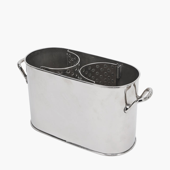 This shiny silver Wine Holder, made from brass, is complete with two slots to house your bottles and sturdy handles making it easy to carry. The shiny silver finish means this wine holder adds a touch of glamour and sophistication wherever it is placed.